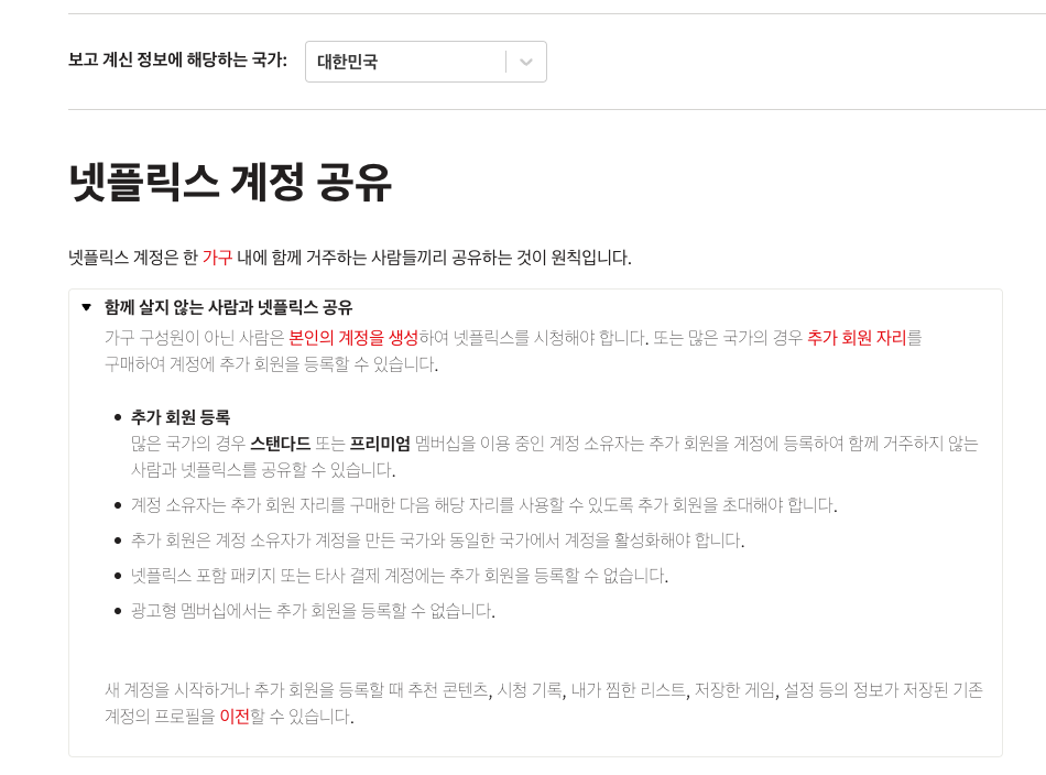 - 추가 요금: 가구 외 이용자와 계정을 공유하려면 매달 5000원을 추가로 지불해야 함